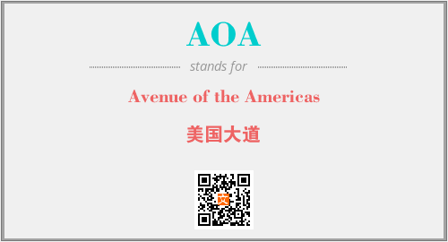 上述内容是“Avenue of the Americas”作为“AOA”的缩写,解释为“美国大道”时的信息,以及英文缩略词AOA所代表的英文单词,其对应的中文拼音、详细解释以及在英文中的流行度和相关分类、应用领域及应用示例等。