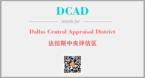 上述内容是“Dallas Central Appraisal District”作为“DCAD”的缩写,解释为“达拉斯中央评估区”时的信息,以及英文缩略词DCAD所代表的英文单词,其对应的中文拼音、详细解释以及在英文中的流行度和相关分类、应用领域及应用示例等。