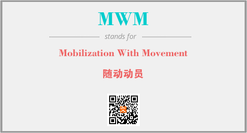上述内容是“Mobilization With Movement”作为“MWM”的缩写,解释为“随动动员”时的信息,以及英文缩略词MWM所代表的英文单词,其对应的中文拼音、详细解释以及在英文中的流行度和相关分类、应用领域及应用示例等。