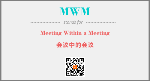 以上为Meeting Within a Meeting英文缩略词MWM的中文解释,以及该英文缩写在英语的流行度、分类和应用领域方面的信息。