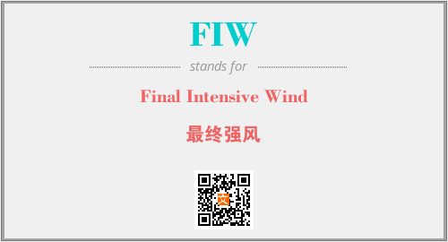 英文缩略词“FIW”经常作为“Final Intensive Wind”的英文缩写来使用,中文表示:“最终强风”。本文将详细介绍英文缩写词FIW所代表英文单词,其对应的中文拼音、详细解释以及在英语中的流行度。此外,还有关于缩略词FIW的分类、应用领域及相关应用示例等。