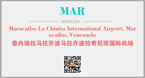 英文缩略词“MAR”经常作为“Maracaibo La Chinita International Airport, Maracaibo, Venezuela”的英文缩写来使用,中文表示:“委内瑞拉马拉开波马拉开波拉奇尼塔国际机场”。本文将详细介绍英文缩写词MAR所代表英文单词,其对应的中文拼音、详细解释以及在英语中的流行度。此外,还有关于缩略词MAR的分类、应用领域及相关应用示例等。