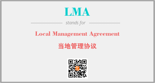 英文缩略词“LMA”经常作为“Local Management Agreement”的英文缩写来使用,中文表示:“当地管理协议”。本文将详细介绍英文缩写词LMA所代表英文单词,其对应的中文拼音、详细解释以及在英语中的流行度。此外,还有关于缩略词LMA的分类、应用领域及相关应用示例等。