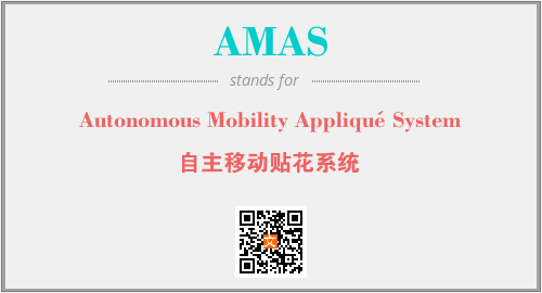 上述内容是“Autonomous Mobility Appliqué System”作为“AMAS”的缩写,解释为“自主移动贴花系统”时的信息,以及英文缩略词AMAS所代表的英文单词,其对应的中文拼音、详细解释以及在英文中的流行度和相关分类、应用领域及应用示例等。