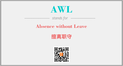 英文缩略词“AWL”经常作为“Absence without Leave”的英文缩写来使用,中文表示:“擅离职守”。本文将详细介绍英文缩写词AWL所代表英文单词,其对应的中文拼音、详细解释以及在英语中的流行度。此外,还有关于缩略词AWL的分类、应用领域及相关应用示例等。