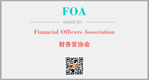 以上为Financial Officers Association英文缩略词FOA的中文解释,以及该英文缩写在英语的流行度、分类和应用领域方面的信息。