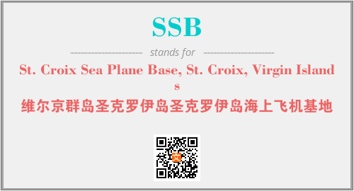 英文缩略词“SSB”经常作为“St. Croix Sea Plane Base, St. Croix, Virgin Islands”的英文缩写来使用,中文表示:“维尔京群岛圣克罗伊岛圣克罗伊岛海上飞机基地”。本文将详细介绍英文缩写词SSB所代表英文单词,其对应的中文拼音、详细解释以及在英语中的流行度。此外,还有关于缩略词SSB的分类、应用领域及相关应用示例等。