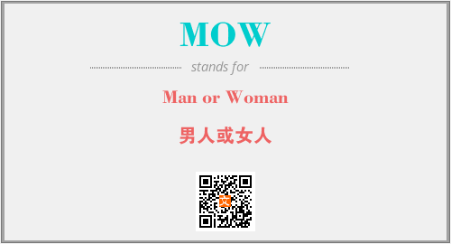 以上为Man or Woman英文缩略词MOW的中文解释,以及该英文缩写在英语的流行度、分类和应用领域方面的信息。