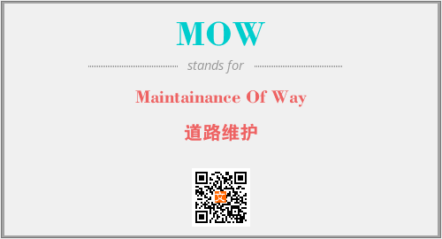 上述内容是“Maintainance Of Way”作为“MOW”的缩写,解释为“道路维护”时的信息,以及英文缩略词MOW所代表的英文单词,其对应的中文拼音、详细解释以及在英文中的流行度和相关分类、应用领域及应用示例等。