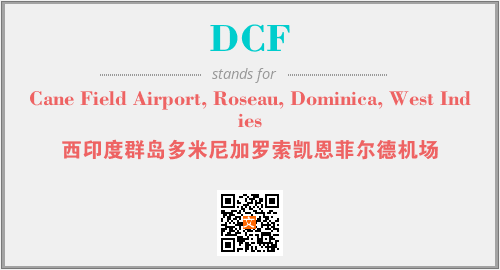 上述内容是“Cane Field Airport, Roseau, Dominica, West Indies”作为“DCF”的缩写,解释为“西印度群岛多米尼加罗索凯恩菲尔德机场”时的信息,以及英文缩略词DCF所代表的英文单词,其对应的中文拼音、详细解释以及在英文中的流行度和相关分类、应用领域及应用示例等。