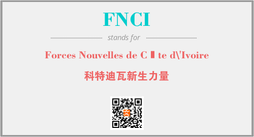 上述内容是“Forces Nouvelles de Côte d\'Ivoire”作为“FNCI”的缩写,解释为“科特迪瓦新生力量”时的信息,以及英文缩略词FNCI所代表的英文单词,其对应的中文拼音、详细解释以及在英文中的流行度和相关分类、应用领域及应用示例等。