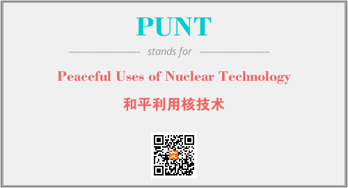 上述内容是“Peaceful Uses of Nuclear Technology”作为“PUNT”的缩写,解释为“和平利用核技术”时的信息,以及英文缩略词PUNT所代表的英文单词,其对应的中文拼音、详细解释以及在英文中的流行度和相关分类、应用领域及应用示例等。