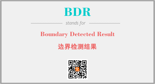 英文缩略词“BDR”经常作为“Boundary Detected Result”的英文缩写来使用,中文表示:“边界检测结果”。本文将详细介绍英文缩写词BDR所代表英文单词,其对应的中文拼音、详细解释以及在英语中的流行度。此外,还有关于缩略词BDR的分类、应用领域及相关应用示例等。