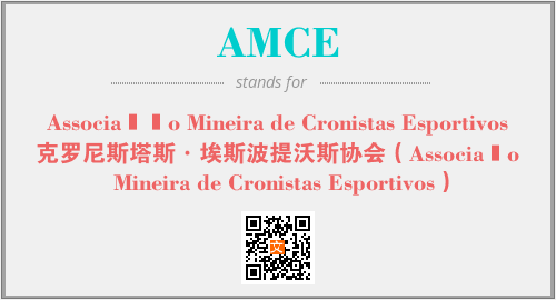 上述内容是“Associação Mineira de Cronistas Esportivos”作为“AMCE”的缩写,解释为“克罗尼斯塔斯·埃斯波提沃斯协会(Associaço Mineira de Cronistas Esportivos)”时的信息,以及英文缩略词AMCE所代表的英文单词,其对应的中文拼音、详细解释以及在英文中的流行度和相关分类、应用领域及应用示例等。