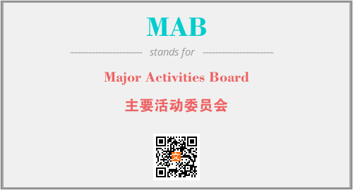 英文缩略词“MAB”经常作为“Major Activities Board”的英文缩写来使用,中文表示:“主要活动委员会”。本文将详细介绍英文缩写词MAB所代表英文单词,其对应的中文拼音、详细解释以及在英语中的流行度。此外,还有关于缩略词MAB的分类、应用领域及相关应用示例等。