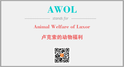 上述内容是“Animal Welfare of Luxor”作为“AWOL”的缩写,解释为“卢克索的动物福利”时的信息,以及英文缩略词AWOL所代表的英文单词,其对应的中文拼音、详细解释以及在英文中的流行度和相关分类、应用领域及应用示例等。