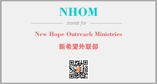 上述内容是“New Hope Outreach Ministries”作为“NHOM”的缩写,解释为“新希望外联部”时的信息,以及英文缩略词NHOM所代表的英文单词,其对应的中文拼音、详细解释以及在英文中的流行度和相关分类、应用领域及应用示例等。