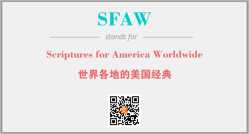上述内容是“Scriptures for America Worldwide”作为“SFAW”的缩写,解释为“世界各地的美国经典”时的信息,以及英文缩略词SFAW所代表的英文单词,其对应的中文拼音、详细解释以及在英文中的流行度和相关分类、应用领域及应用示例等。