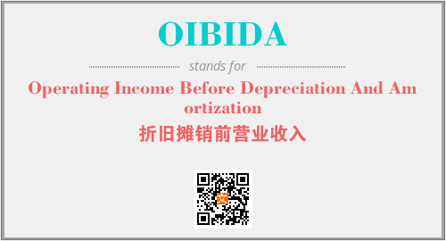 以上为Operating Income Before Depreciation And Amortization英文缩略词OIBIDA的中文解释,以及该英文缩写在英语的流行度、分类和应用领域方面的信息。