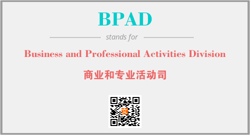 英文缩略词“BPAD”经常作为“Business and Professional Activities Division”的英文缩写来使用,中文表示:“商业和专业活动司”。本文将详细介绍英文缩写词BPAD所代表英文单词,其对应的中文拼音、详细解释以及在英语中的流行度。此外,还有关于缩略词BPAD的分类、应用领域及相关应用示例等。