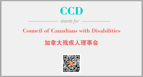 上述内容是“Council of Canadians with Disabilities”作为“CCD”的缩写,解释为“加拿大残疾人理事会”时的信息,以及英文缩略词CCD所代表的英文单词,其对应的中文拼音、详细解释以及在英文中的流行度和相关分类、应用领域及应用示例等。