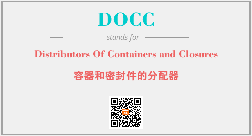 上述内容是“Distributors Of Containers and Closures”作为“DOCC”的缩写,解释为“容器和密封件的分配器”时的信息,以及英文缩略词DOCC所代表的英文单词,其对应的中文拼音、详细解释以及在英文中的流行度和相关分类、应用领域及应用示例等。