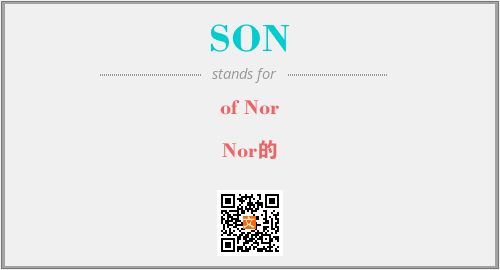 上述内容是“of Nor”作为“SON”的缩写,解释为“Nor的”时的信息,以及英文缩略词SON所代表的英文单词,其对应的中文拼音、详细解释以及在英文中的流行度和相关分类、应用领域及应用示例等。