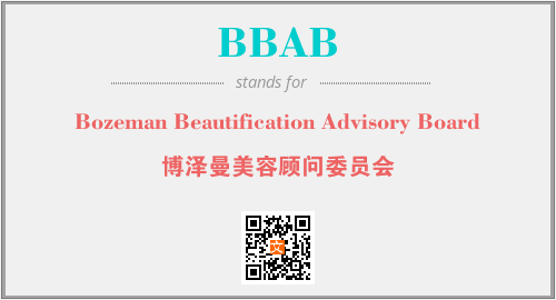 上述内容是“Bozeman Beautification Advisory Board”作为“BBAB”的缩写,解释为“博泽曼美容顾问委员会”时的信息,以及英文缩略词BBAB所代表的英文单词,其对应的中文拼音、详细解释以及在英文中的流行度和相关分类、应用领域及应用示例等。