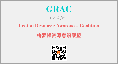 上述内容是“Groton Resource Awareness Coalition”作为“GRAC”的缩写,解释为“格罗顿资源意识联盟”时的信息,以及英文缩略词GRAC所代表的英文单词,其对应的中文拼音、详细解释以及在英文中的流行度和相关分类、应用领域及应用示例等。