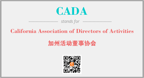 以上为California Association of Directors of Activities英文缩略词CADA的中文解释,以及该英文缩写在英语的流行度、分类和应用领域方面的信息。