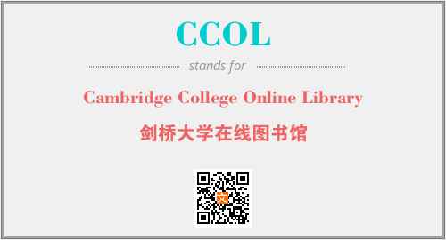 上述内容是“Cambridge College Online Library”作为“CCOL”的缩写,解释为“剑桥大学在线图书馆”时的信息,以及英文缩略词CCOL所代表的英文单词,其对应的中文拼音、详细解释以及在英文中的流行度和相关分类、应用领域及应用示例等。