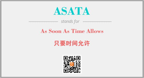 上述内容是“As Soon As Time Allows”作为“ASATA”的缩写,解释为“只要时间允许”时的信息,以及英文缩略词ASATA所代表的英文单词,其对应的中文拼音、详细解释以及在英文中的流行度和相关分类、应用领域及应用示例等。