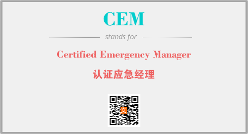 上述内容是“Certified Emergency Manager”作为“CEM”的缩写,解释为“认证应急经理”时的信息,以及英文缩略词CEM所代表的英文单词,其对应的中文拼音、详细解释以及在英文中的流行度和相关分类、应用领域及应用示例等。