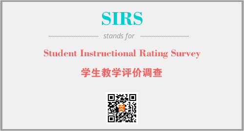 上述内容是“Student Instructional Rating Survey”作为“SIRS”的缩写,解释为“学生教学评价调查”时的信息,以及英文缩略词SIRS所代表的英文单词,其对应的中文拼音、详细解释以及在英文中的流行度和相关分类、应用领域及应用示例等。