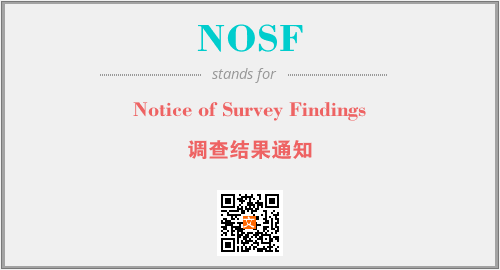 上述内容是“Notice of Survey Findings”作为“NOSF”的缩写,解释为“调查结果通知”时的信息,以及英文缩略词NOSF所代表的英文单词,其对应的中文拼音、详细解释以及在英文中的流行度和相关分类、应用领域及应用示例等。