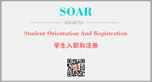 上述内容是“Student Orientation And Registration”作为“SOAR”的缩写,解释为“学生入职和注册”时的信息,以及英文缩略词SOAR所代表的英文单词,其对应的中文拼音、详细解释以及在英文中的流行度和相关分类、应用领域及应用示例等。