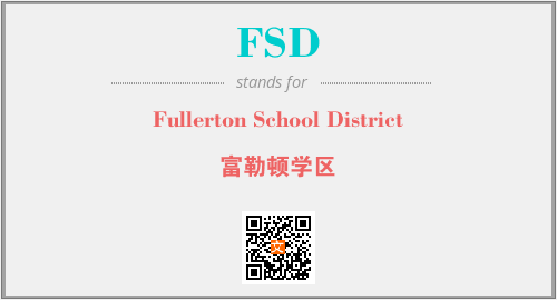 上述内容是“Fullerton School District”作为“FSD”的缩写,解释为“富勒顿学区”时的信息,以及英文缩略词FSD所代表的英文单词,其对应的中文拼音、详细解释以及在英文中的流行度和相关分类、应用领域及应用示例等。