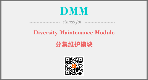 上述内容是“Diversity Maintenance Module”作为“DMM”的缩写,解释为“分集维护模块”时的信息,以及英文缩略词DMM所代表的英文单词,其对应的中文拼音、详细解释以及在英文中的流行度和相关分类、应用领域及应用示例等。