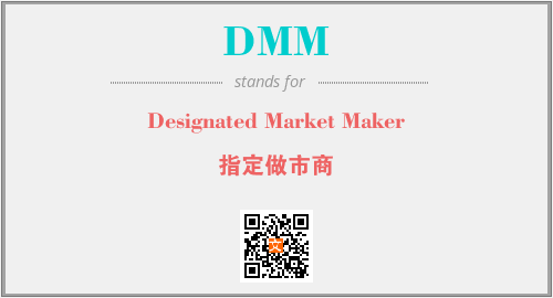 英文缩略词“DMM”经常作为“Designated Market Maker”的英文缩写来使用,中文表示:“指定做市商”。本文将详细介绍英文缩写词DMM所代表英文单词,其对应的中文拼音、详细解释以及在英语中的流行度。此外,还有关于缩略词DMM的分类、应用领域及相关应用示例等。