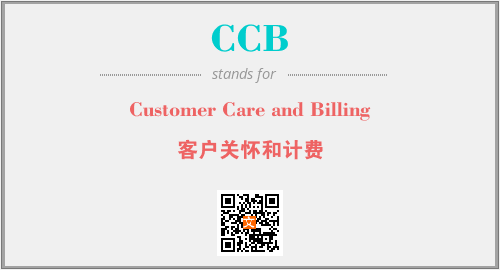 英文缩略词“CCB”经常作为“Customer Care and Billing”的英文缩写来使用,中文表示:“客户关怀和计费”。本文将详细介绍英文缩写词CCB所代表英文单词,其对应的中文拼音、详细解释以及在英语中的流行度。此外,还有关于缩略词CCB的分类、应用领域及相关应用示例等。