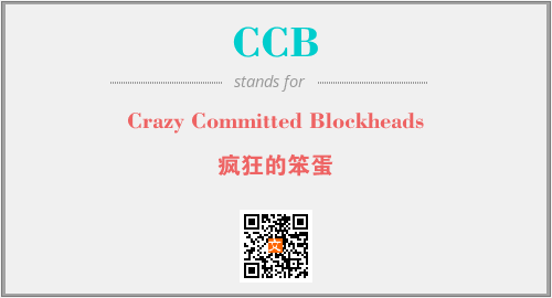 英文缩略词“CCB”经常作为“Crazy Committed Blockheads”的英文缩写来使用,中文表示:“疯狂的笨蛋”。本文将详细介绍英文缩写词CCB所代表英文单词,其对应的中文拼音、详细解释以及在英语中的流行度。此外,还有关于缩略词CCB的分类、应用领域及相关应用示例等。
