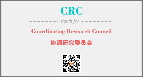 英文缩略词“CRC”经常作为“Coordinating Research Council”的英文缩写来使用,中文表示:“协调研究委员会”。本文将详细介绍英文缩写词CRC所代表英文单词,其对应的中文拼音、详细解释以及在英语中的流行度。此外,还有关于缩略词CRC的分类、应用领域及相关应用示例等。