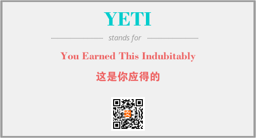 英文缩略词“YETI”经常作为“You Earned This Indubitably”的英文缩写来使用,中文表示:“这是你应得的”。本文将详细介绍英文缩写词YETI所代表英文单词,其对应的中文拼音、详细解释以及在英语中的流行度。此外,还有关于缩略词YETI的分类、应用领域及相关应用示例等。
