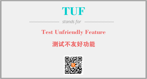 英文缩略词“TUF”经常作为“Test Unfriendly Feature”的英文缩写来使用,中文表示:“测试不友好功能”。本文将详细介绍英文缩写词TUF所代表英文单词,其对应的中文拼音、详细解释以及在英语中的流行度。此外,还有关于缩略词TUF的分类、应用领域及相关应用示例等。
