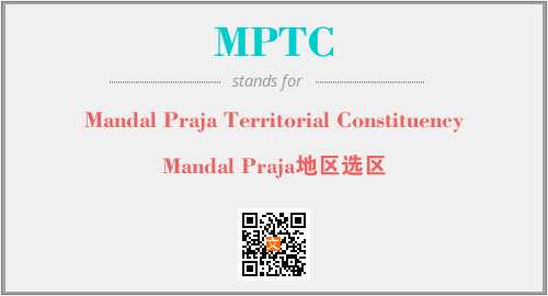 上述内容是“Mandal Praja Territorial Constituency”作为“MPTC”的缩写,解释为“Mandal Praja地区选区”时的信息,以及英文缩略词MPTC所代表的英文单词,其对应的中文拼音、详细解释以及在英文中的流行度和相关分类、应用领域及应用示例等。