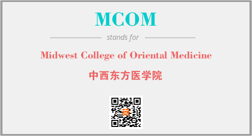 英文缩略词“MCOM”经常作为“Midwest College of Oriental Medicine”的英文缩写来使用,中文表示:“中西东方医学院”。本文将详细介绍英文缩写词MCOM所代表英文单词,其对应的中文拼音、详细解释以及在英语中的流行度。此外,还有关于缩略词MCOM的分类、应用领域及相关应用示例等。