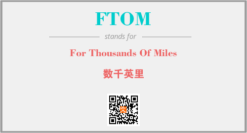 英文缩略词“FTOM”经常作为“For Thousands Of Miles”的英文缩写来使用,中文表示:“数千英里”。本文将详细介绍英文缩写词FTOM所代表英文单词,其对应的中文拼音、详细解释以及在英语中的流行度。此外,还有关于缩略词FTOM的分类、应用领域及相关应用示例等。