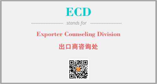 上述内容是“Exporter Counseling Division”作为“ECD”的缩写,解释为“出口商咨询处”时的信息,以及英文缩略词ECD所代表的英文单词,其对应的中文拼音、详细解释以及在英文中的流行度和相关分类、应用领域及应用示例等。