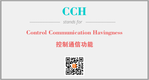 英文缩略词“CCH”经常作为“Control Communication Havingness”的英文缩写来使用,中文表示:“控制通信功能”。本文将详细介绍英文缩写词CCH所代表英文单词,其对应的中文拼音、详细解释以及在英语中的流行度。此外,还有关于缩略词CCH的分类、应用领域及相关应用示例等。