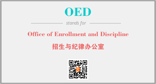上述内容是“Office of Enrollment and Discipline”作为“OED”的缩写,解释为“招生与纪律办公室”时的信息,以及英文缩略词OED所代表的英文单词,其对应的中文拼音、详细解释以及在英文中的流行度和相关分类、应用领域及应用示例等。